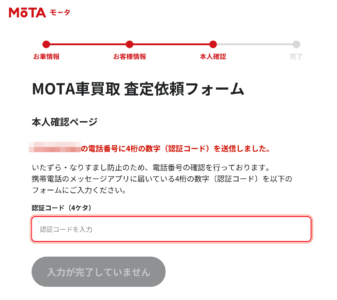 入力終わり完了ボタンを押したら自動的に認証コードが電話番号宛に送られます。